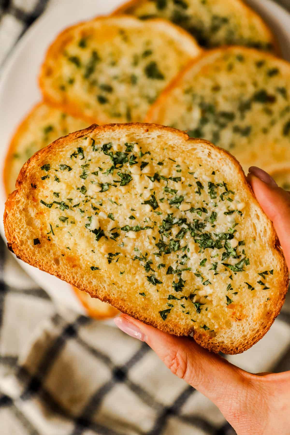 Made with French bread, real butter, and fresh garlic cloves, it bakes in the oven until crisp on the edges and soft in the center. You only need a few pantry ingredients, a baking sheet, and 10 minutes to make this easy side dish that pairs perfectly with pasta, soup, or casseroles. 👇👇